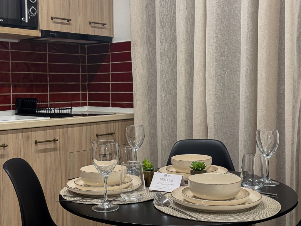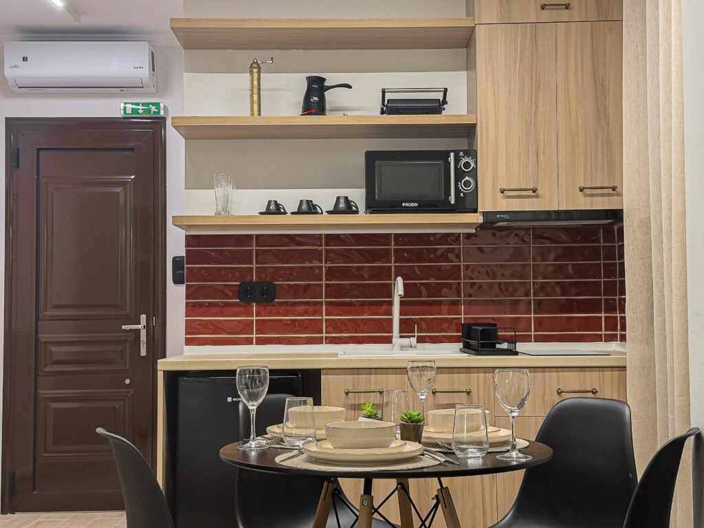 A fully equipped kitchenette with modern appliances.